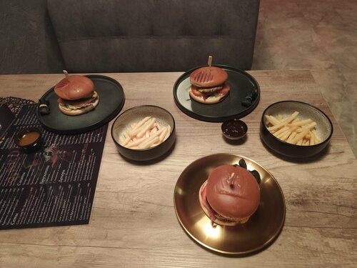 Были семьёй в данном заведении.Интерьер понравился,приглушённый свет,камерная атмосфера,ненавязчивая музыка создают уют и настроение.Заказ состоял из трёх разных бургеров и картошки-фри.Все блюде были более чем вкусные.Нежные и мягкие булочки бриошь,баланс вкуснейшие соусов и овощей,золотистая картошка.Единственным минусом я считаю котлету не уровне макдака,(видимо они готовят из замороженных полуфабрикатов,а не из свежего фарша)хотя ее недостатки скрывают соусы.Еще бы хотелось по веянию моды видеть в меню фри из батата. В целом заведение стоит,чтобы его специально посетить и не раз.