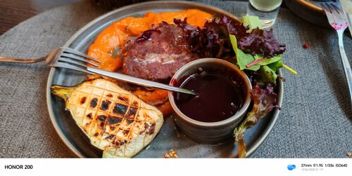 Еда вкусная, порции большие, цены нормальные для центра города, сыровато (возможно из-за близости реки) , помещение небольшое, в туалете грязновато, обслуживание средненькое, хороший выбор настоек