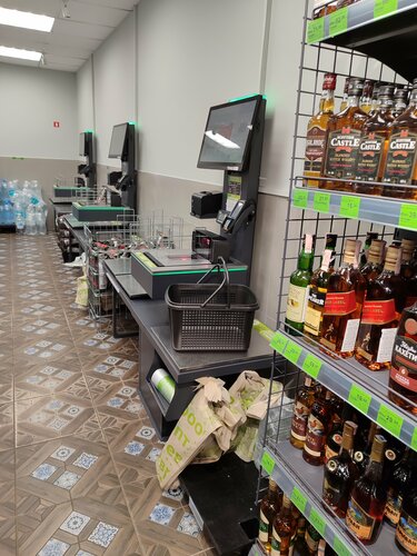 Магазин хороший! Ассортимент продукции достойный. Сам магазин чистый, аккуратный. Есть кассы самообслуживания. Просторный, если сравнивать с Еврооптами в других ближайших агрогородках (аг. Сёмково, аг. Лошаны). Днём людей мало.