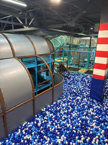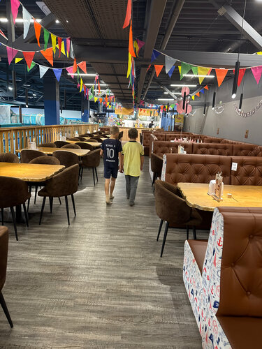 Классная комната. Нравится, что когда сидишь в кафе за столом, просматривается почти весь зал, поэтому за детьми можно не ходить по пятам. В кафе большой выбор еды и напитков, с собой приносить ничего нельзя. Пришли специально в понедельник утром, когда здесь никого нет, мы только своей компанией здесь оказались — очень здорово) В комнате часто проводят конкурсы, где разыгрывают детские билеты, поэтому наши дети прошли по своим заслуженным съемками в видео билетам) Заплатили только за взрослые ☺️ Из минусов только то, что не было авторских чаев во время нашего визита и нет лимона, чтоб добавить в чай 😏 Но это мелочи, в остальном все отлично)