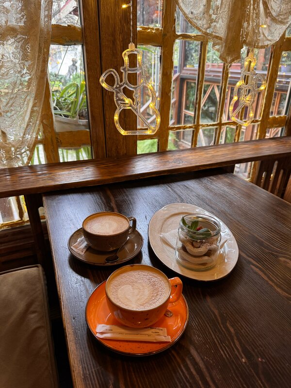Отличное атмосферное кафе в центре города с приемлемыми ценами и вкусной едой 😍 Теперь заходим сюда с детьми каждую неделю после их занятий. Им очень нравится. А мы пьем вкусный кофе с десертом. Попробовали уже почти все — очень понравился Наполеон. И сезонное меню интересное ❤️
