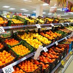 Из плюсов: Хороший выбор фруктов, яйца хранятся в холодильнике, очень большой выбор мороженого. Есть аптека рядом. На парковке всегда есть свободные места. Из минусов : ужасные проблемы с тележками, они все не едут. Корзин я там вообще не видела в этом году, и очень часто воняет тухлым из холодильника с мясом.