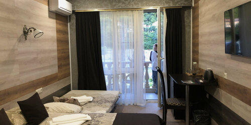 Гостевой дом Бастион бронировали впервые по рекомендации и остались довольны! У нас был трёхместный номер на втором этаже с балконом и видом на реку. Гостевой дом и номер замечательный. Чисто, приятно, тенистый двор и много цветов. Номер, мебель, санузел, телевизор и бытовая техника в отличном состоянии. Белые полотенца, одноразовые тапочки. В номере были мини холодильник, чайник, кондиционер, телевизор, фен, сейф. Кухня общая во дворе, оборудована всем необходимым. Во дворе есть зона барбекю. На крыше гостевого дома большой бассейн и зона отдыха с шезлонгами. Бассейн супер! Муж и сын каждое утро плавали. Сергей и Наталья - владельцы дома - очень приветливые и общительные. Администратор Катя - приятная женщина, всегда готова помочь, следит за порядком. Спасибо, Катя за заботу! Дом находится в 15 минутах ходьбы от моря. Кому-то покажется далековато, а кто-то обрадуется возможности ходить пешком. Две недели провели замечательно! Гостевой дом рекомендуем.
