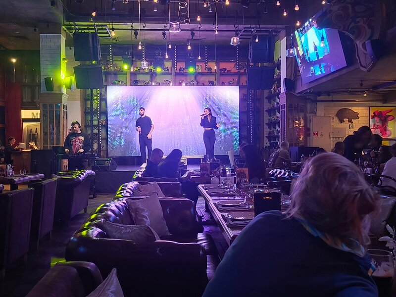 Долго думали где вечером поужинать, посоветовали ресторан Рибай. Все классно! Поющие и танцующие официанты! Это надо видеть и слышать. Прекрасная кухня! Классная атмосфера! Будите в Питере посетите! Это будет незабываемый вечер!
