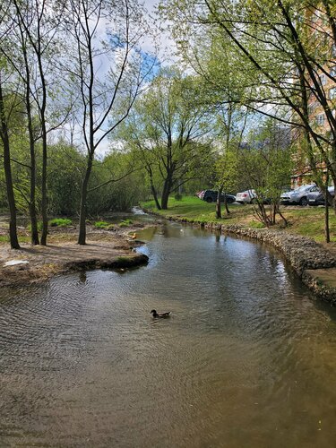 Приятное место для прогулки. Есть качели, лавочки, детская площадка
