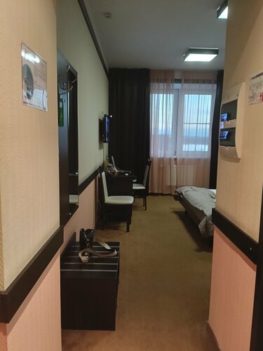 Очень хороший отель. В номере есть все необходимое: Полотенца, тапочки, шампунь, гель для душа, зубная щетка, паста, фен, холодильник и даже разделочная доска), щётка для одежды и обуви, кондиционер. В коридоре стоит кулер. В номере так же есть два стакана. Внизу есть кофейный аппарат, кстати кофе очень даже вкусный. Так же есть ресторан, но я в него не ходила. Рядом большая парковая зона, огромное водохранилище. Не далеко есть магазины продуктов, а в 10 минутах ходьбы Макдональдс. Ближайшее метро Автозаводская, ехать на троллейбусе минут 15-20. До вокзала минут 40 наверное. Я не привередлива я, мне все понравилось. Для меня было важно, чтобы рядом был парк или лес, так что однозначно рекомендую тем, кто устал от городской суеты.