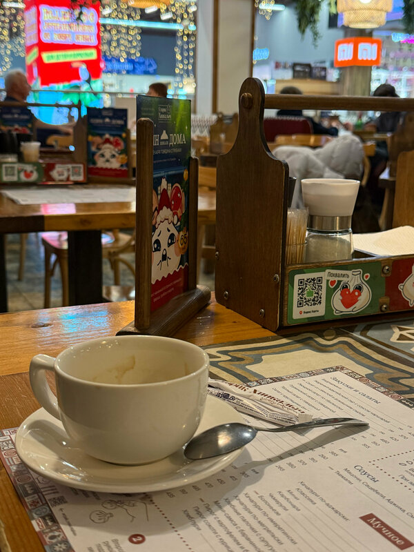 Хорошее заведение, чтобы забежать перекусить. Нам попалась прекрасная девушка официант, приветлива и быстро обслужила. Хачапури по аджарски мини с перепелиным яйцом и хинкали с грибами очень вкусные! К сожалению нет мангала. Много напитков в ассортименте Из минусов - кофе, пить не возможно ( убрали из чека)