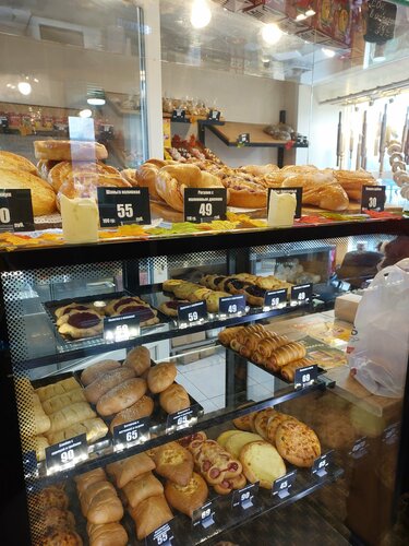 Заезжаю только когда рядом по делам. Маленькая, но уютная. В небольшом пространстве постарались сделать тематический интерьер. Хлебушек свежий. Запах прекрасный! В этот раз брали манник - 4+ (домашний все равно лучше🙃), Анну Павлову - 4+ (сегодня была суховата), корзинки - 5, обычно еще эклеры - но сегодня не хотелось....осень, наверное... кофе не пробовали, есть еще различные пирожки и пироги по 0.5кг., салаты, горячее. Девочки-пррдавцы всегда приветливы.