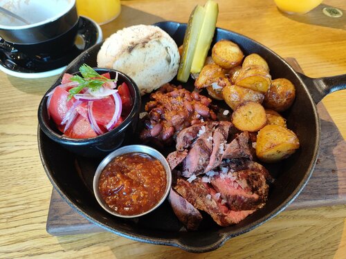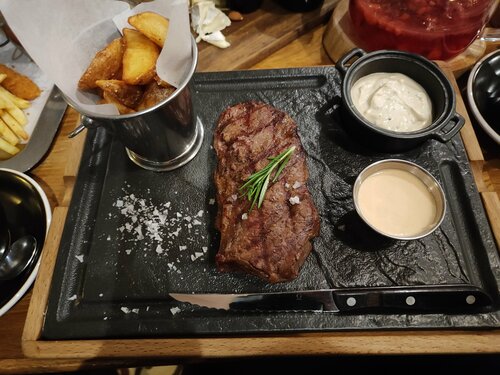Однозначно рекомендую! Подали все достаточно быстро, все блюда были вкусными и горячими. Стейк был выше всяких похвал, луковые кольца, крылышки и колбаски с сыром особенно понравились. Обязательно посетим это место ещё не один раз. Update: обеды топовые, хорошая порция, очень вкусно и разнообразно.