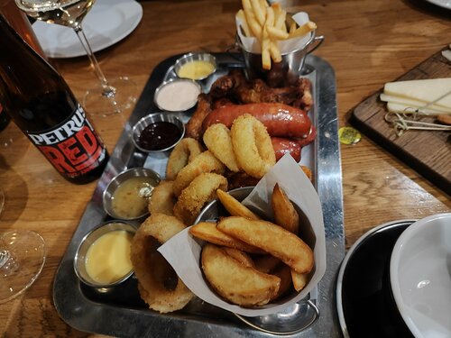 Неплохое место, много посадочных мест, обслуживание очень хорошее. По кухне нормально, чего-то сверх вкусного не ожидайте. Пожалуй самое вкусное это ребра, к сожалению не успела сфотографировать. По напиткам заказывали глинтвейн и коктейль малина манго, вкусно, смело можно заказывать. Если хотите собраться большой компанией, посмотреть футбол и попить пиво с неплохими закусками, то рекомендую это место, мне кажется будет атмосферно.