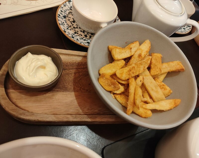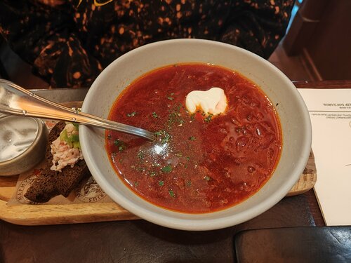 Смело рекомендую! Были в будний день в обед, сели без брони. Осень уютное место, сервис прекрасный, персонал заинтересован, чтобы вы остались сытыми и довольными. По блюдам особенно рекомендую: салат с хрустящими баклажанами, картофель фри с халапеньо и пармезаном и борщ. Колбаски вкусные, но пожалуй, повторно их заказывать не стала бы, дефолтные. Под конец хватило место только на один десерт, выбрали чизкейк сан-себастьян, очень вкусно. Чаи вкусные, насыщенные и согревающие. Обязательно вернусь в это заведение, в меню ещё много интересных позиций.