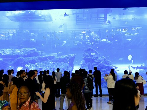 Из плюсов: самый большой аквариум!) Из минусов: толпы людей. Рыбы однотипные. Очереди большие.