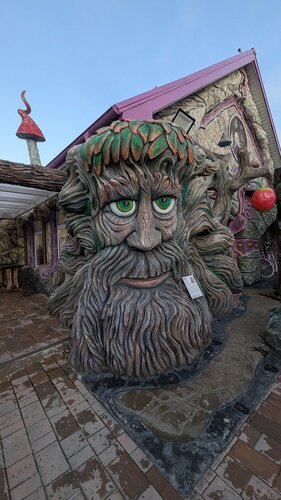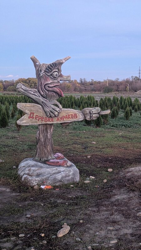 Тематическое место. Много бетонных и металлических фигур от малых форм до высоты двухэтажного дома. Ретро автомобили. Комнаты туалетов- это надо самим видеть , потому как забываешь, зачем зашёл в них. Мост живописный, для свадеб идеален. Пруд с утками, животные, красочные поля лаванды и туи. Есть Фаст фуд. Эмоций масса. Есть магазин бредовой одежды . Парковка . Строят гостиницу и аквапарк. Проходят концерты. Моя рекомендация - это сделать бесплатный трансфер из Пятигорска, Ставрополя и т.д., это привлечёт массу новых клиентов и , соответственно, деньги для развития. Парк просто фантастически интересен. Рекомендую к посещению. Цены от 400 р. Есть скидки. Низкий поклон художнику, дизайнеру, персоналу и руководству за позитивный отдых. 💓
