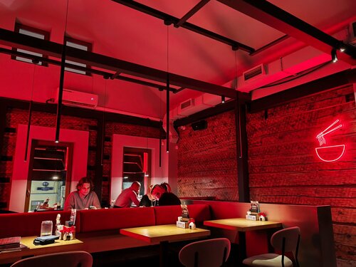Очень атмосферное место в центре города с классной музыкой, приятным дизайном и крутыми сотрудниками Объемный заказ вынесли очень быстро, есть своя система с картами лояльности. Единственное пожелание — не хватает возможности смотреть их напрямую в тг-боте и владельцами смартфонов на Android придется пробираться через костыли По музыке, качеству еды и ценам в меню сразу напомнили рестораны Frank, но в азиатском сеттинге