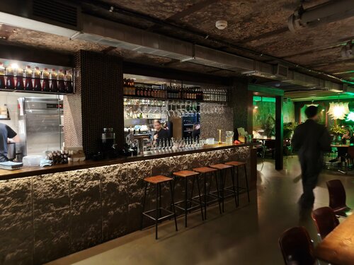 Заходили на перерыв и перекус в процессе прогулок между павильонами ВДНХ Из плюсов: очень низкое время ожидания заказа, выноса блюд и напитков, ценник стабильно московский Среди минусов здесь очень неудобная логистика внутри помещений, отсутствующие поручни на лестницах, единственная уборная на большое количество посадочных мест. Много позиций по барной карте отсутствовали в момент заказа, спасибо что сотрудники предупредили, но впечатление подпортило