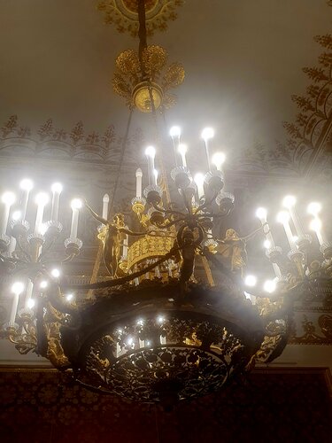 Богатейший род, имения, фабрики, промыслы по всей России, кричащая роскошь дворца, даже сейчас, когда он фактически "голый", бездна шедевральной живописи, шпалерной развеской рама к раме закрывающей стены: Тициан, Рубенс, Ван Дейк, Рембрант, сегодня либо распродана большевиками, либо разделена по музеям, либо пропала. Кое что Юсуповым удалось вывезти и продать. Дорого, дорого, здесь всё очень дорого. Неудивительно, что в 1919 во дворце открыли Музей дворянского быта. Предметов роскоши накуплено, что называется, как не в себя. Несдержанность и в том, что посчитали возможным карать без суда и следствия (об убийстве Распутина отдельный маршрут). Что понравилось? Планировка. Ложные двери, закрытые глазу переходы между этажами, тайники. На сегодняшний день жива внучка Феликса Юсупова - последнего владельца. Когда он в возрасте 80ти лет скончался в Париже, ей было 26. Так что это вполне осознанный возраст, чтобы помнить свою родню и говорить на русском. Вроде жили здесь Юсуповы так давно, а с другой стороны - совсем недавно.
