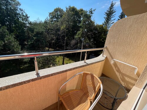 Номера просторные чистые, ремонт новый. Есть кондиционер, телевизор, посуда, чайник, большой шкаф, тапочки, сейф, полотенца. Халаты за отдельную плату. Бассейн чистый, но маловат, вариант для детишек. Шезлонгов много. Есть свой бар и уличный кинотеатр возле бассейна(можно взять попкорн и уютно расположиться на мягких пуфиках возле большого тв), завтрак шведский стол, кофе с кофемашины. Лифт всегда занят, так как мы ездили в сезон). Ухоженная территория с пальмами и кустами, чисто. Кстати кровать очень уютная, с мягкими подголовниками и удобным широким матрасом, также у нас в номере было широкое кресло доп место. Убираются каждый день. Просторный балкон со столиком и двумя стульями и сушилкой. До моря идти минуты 4. В общем, рекомендую.