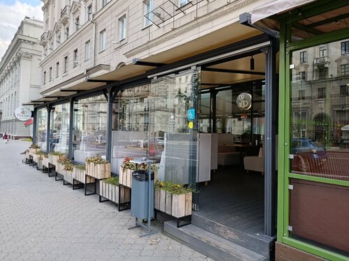 Посидеть в "Пчёлах" лучше всего, когда никуда не спешишь. Здесь спокойная уютная атмосфера с неспешным ритмом. Удобные диванчики, приятная музыка, ароматный кофе, а за окном проспект Независимости с его кипучей жизнью. Персонал доброжелательный, но не навязчивый. Завтраки очень хороши и десерты замечательные.