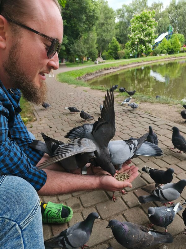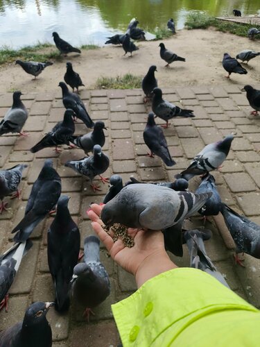 Прикольная жабка. Рядом есть место для покупки корма для уточек и голубцов. Все накормлены! Один голубец так обожрался, что потом пошел валяться на газон 🤣