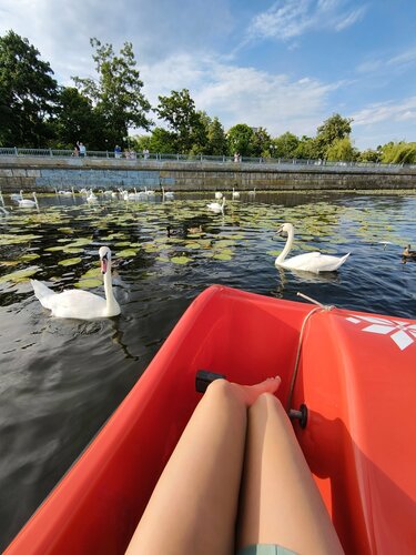 Классная возможность приблизиться к очаровательным лебедям, так это взять на прокат катамаран и купить мешок корма для птиц! (корм продается рядом с пирсом теплохода Гродно) Невероятные ощущения и крутые фотки обеспечены! Прокат катамарана от полу часа, мы брали по итогу на час, т.к. очень увлекательное мероприятие 💕🦢