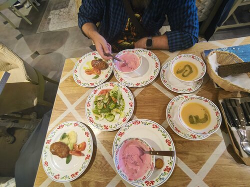 Место с красивым видом, брали селедку и Драники с красной рыбкой. Было вкусно, но обслуживание просто ужас