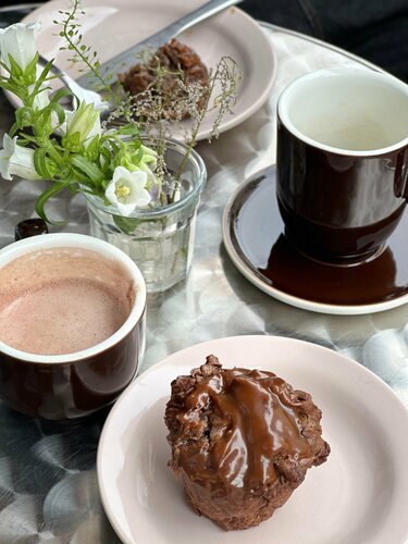 Совершенно чудесное место! Хорошее обслуживание, прекрасная подача, вкусная еда и качественный кофе. Очень спокойно, далеко от дороги и суеты)) Климу отдельная благодарность за радушный приём 🐣 придем ещё не раз! Кушала пасту 4 сыра - гармоничное сочетание сливочного вкуса и нежной консистенции с хрустящим арахисом: понравилось. Пила сезонное какао: было интересно, чувствовался непринужденный ягодный вкус. Как называется кексообразная выпечка не знаю, но это было вкусно: не приторно сладко, в меру, вкусная карамель и нежное тесто. Короче, по вкусу вкусно и по сути вкусно. Местечко для ценителей прекрасного))