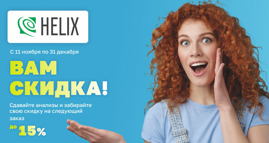 Акция «Вам скидка!» ⭐ 🎉 Внимание, внимание! «Вам скидка!» от Международной медицинской лаборатории Хеликс! 🎉 С 11 ноября по 31 декабря 20...