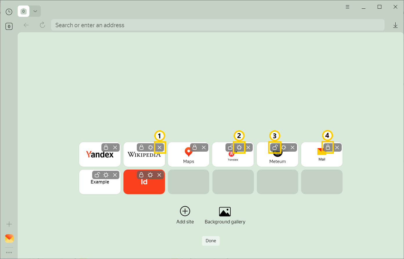 Yandex Browser updates the tiles on the Tableau from time to time: it adds sites that you most often look for in the SmartBox or open through the Tableau. To keep the tiles you need at hand, pin them.