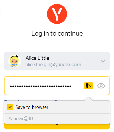 If you enter a password with no username, Yandex Browser suggests a previously saved username.