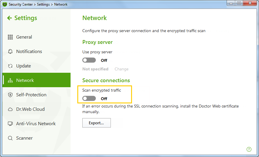 Disable HTTPS connection tests for the Dr.Web antivirus software