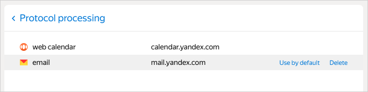 You can set the default web service for email and calendar in the beta version of Yandex Browser.