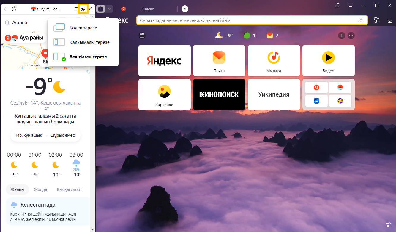 Бекітілген терезеде кейде сайттың мобильді нұсқасымен жұмыс істеу ыңғайлы. Оны ашу үшін → Мобильдік нұсқа түймесін басыңыз.