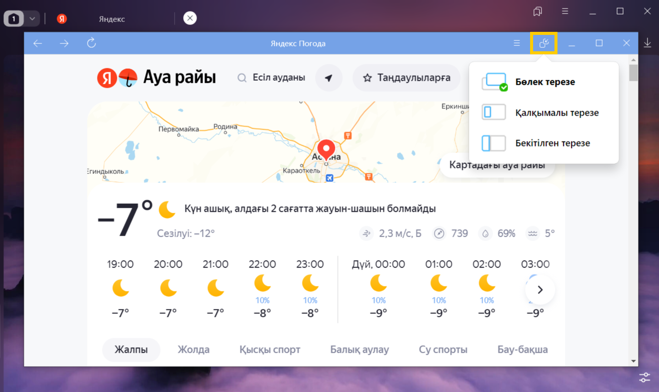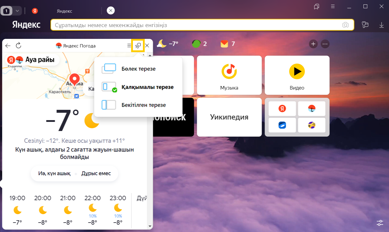Қалқымалы терезеде кейде сайттың мобильді нұсқасымен жұмыс істеу ыңғайлы. Оны ашу үшін → Мобильдік нұсқа түймесін басыңыз.