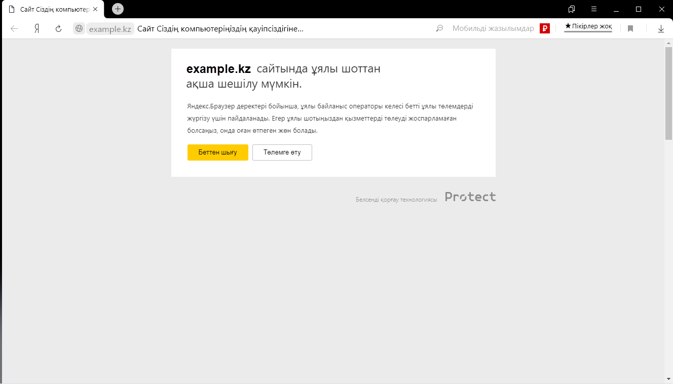 Егер сіз ақылы жазылым туралы ескертулерді өшіргіңіз келсе, Браузерде зарарлы сайттар мен бағдарламалардан қорғауды толық өшіруге тура келеді. Біз бұны жасамауға кеңес береміз.