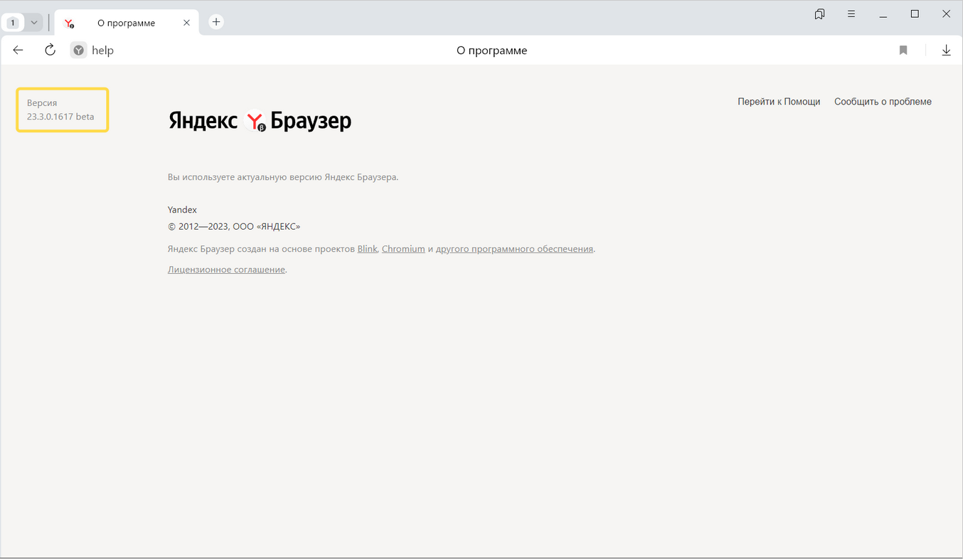 Чтобы узнать версию Браузера, нажмите  → Помощь → О Браузере или наберите в Умной строке адрес browser://help