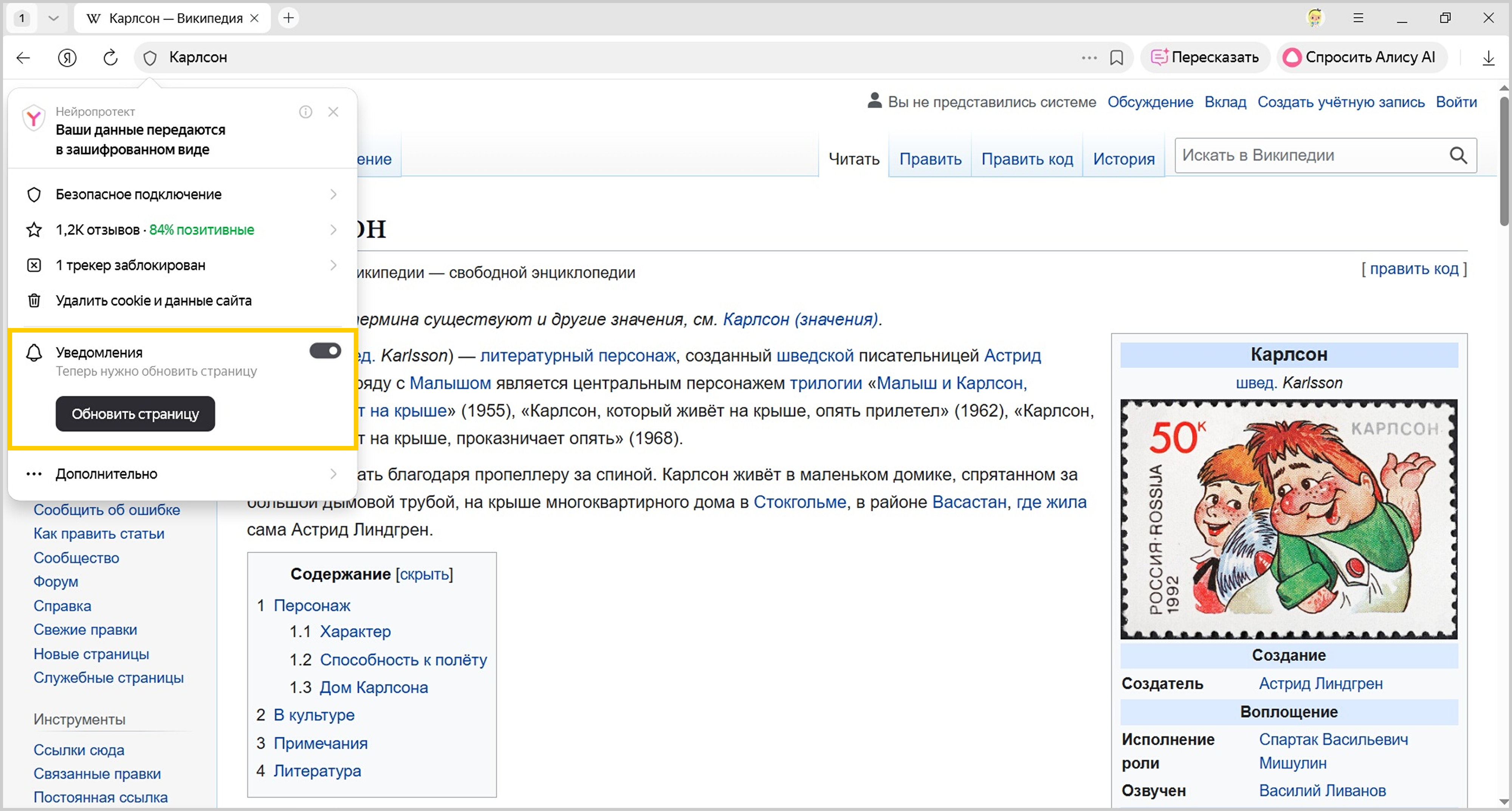Cайты могут отправлять уведомления о новостях, комментариях, обновлениях и других событиях. Как правило, сайты запрашивают разрешение на отправку уведомлений, но иногда могут делать это без спроса. В Браузере вы можете разрешать или блокировать уведомления от конкретного сайта или вовсе запретить всем сайтам предлагать отправку уведомлений.