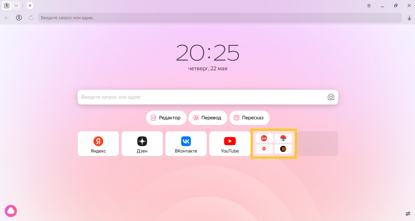 Когда вы открываете новую вкладку или нажимаете Умную строку, появляется Табло. Это панель с плитками — виджетами сайтов, которые вы чаще всего посещаете. По умолчанию на Табло установлены плитки некоторых сервисов Яндекса.
