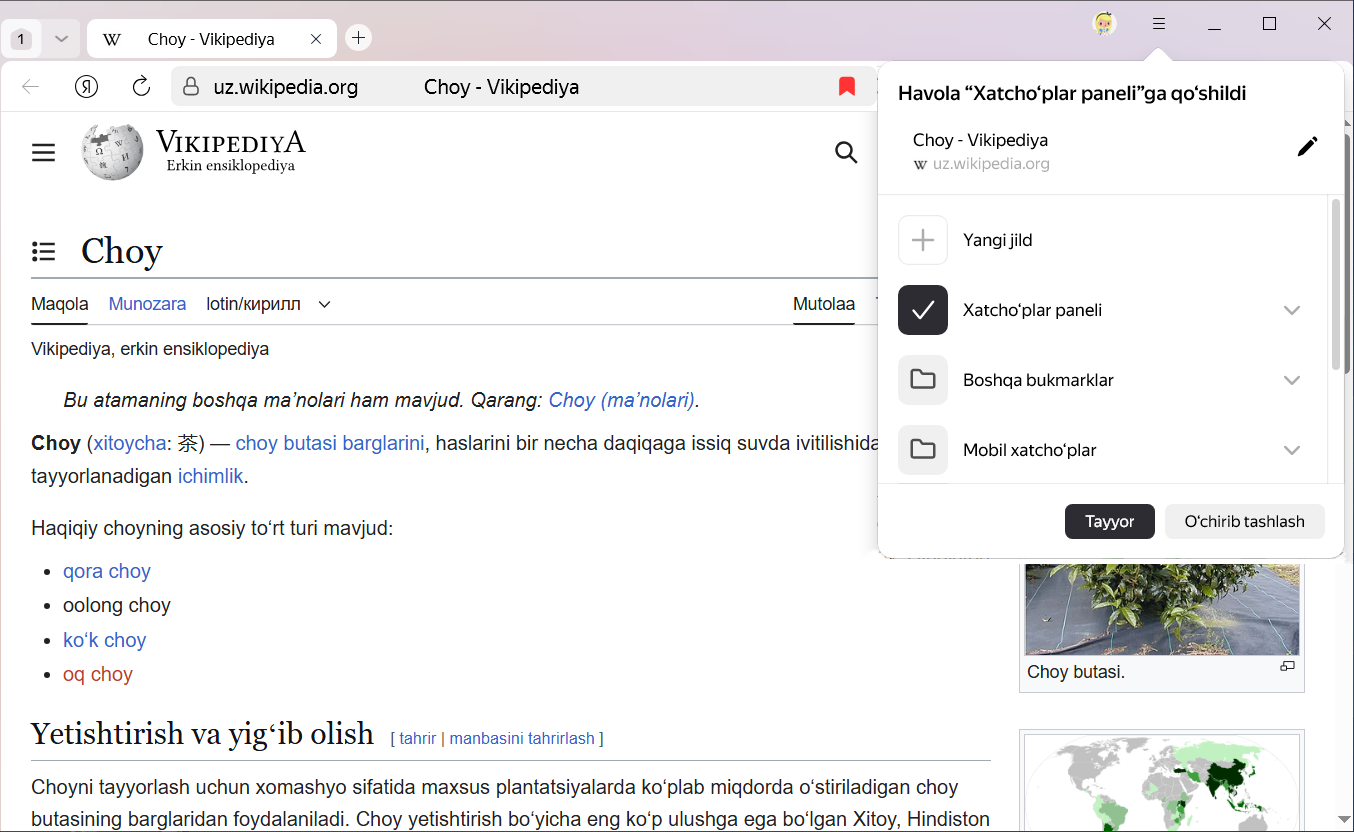Havolaga sichqonchaning oʻng tugmasi bilan bosing va Havolani xatchoʻplarga qoʻshish tugmasini tanlang. Xatchoʻplar paneli ochiladi.