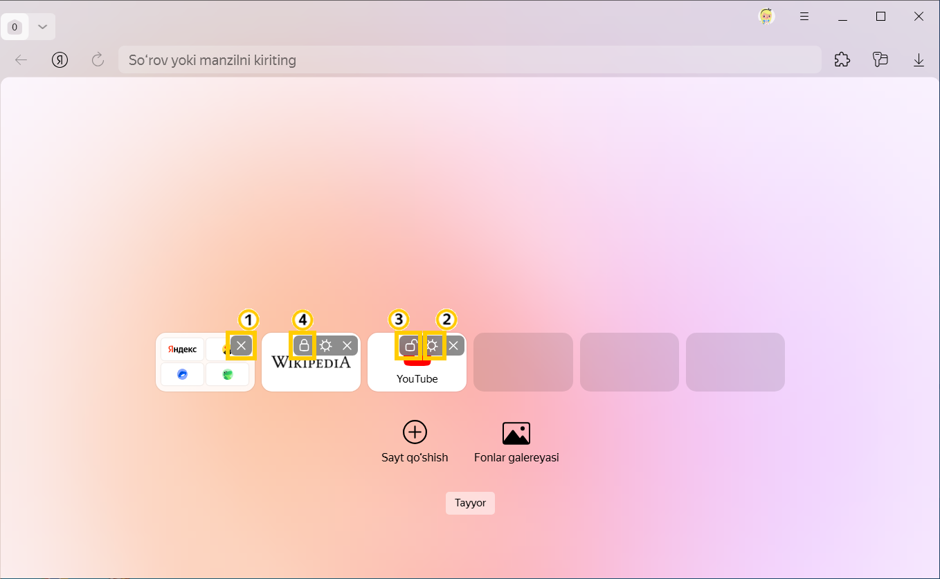Boshqa variant: Tabloda boʻsh piktogrammani bosing va kerakli saytni koʻrsating.