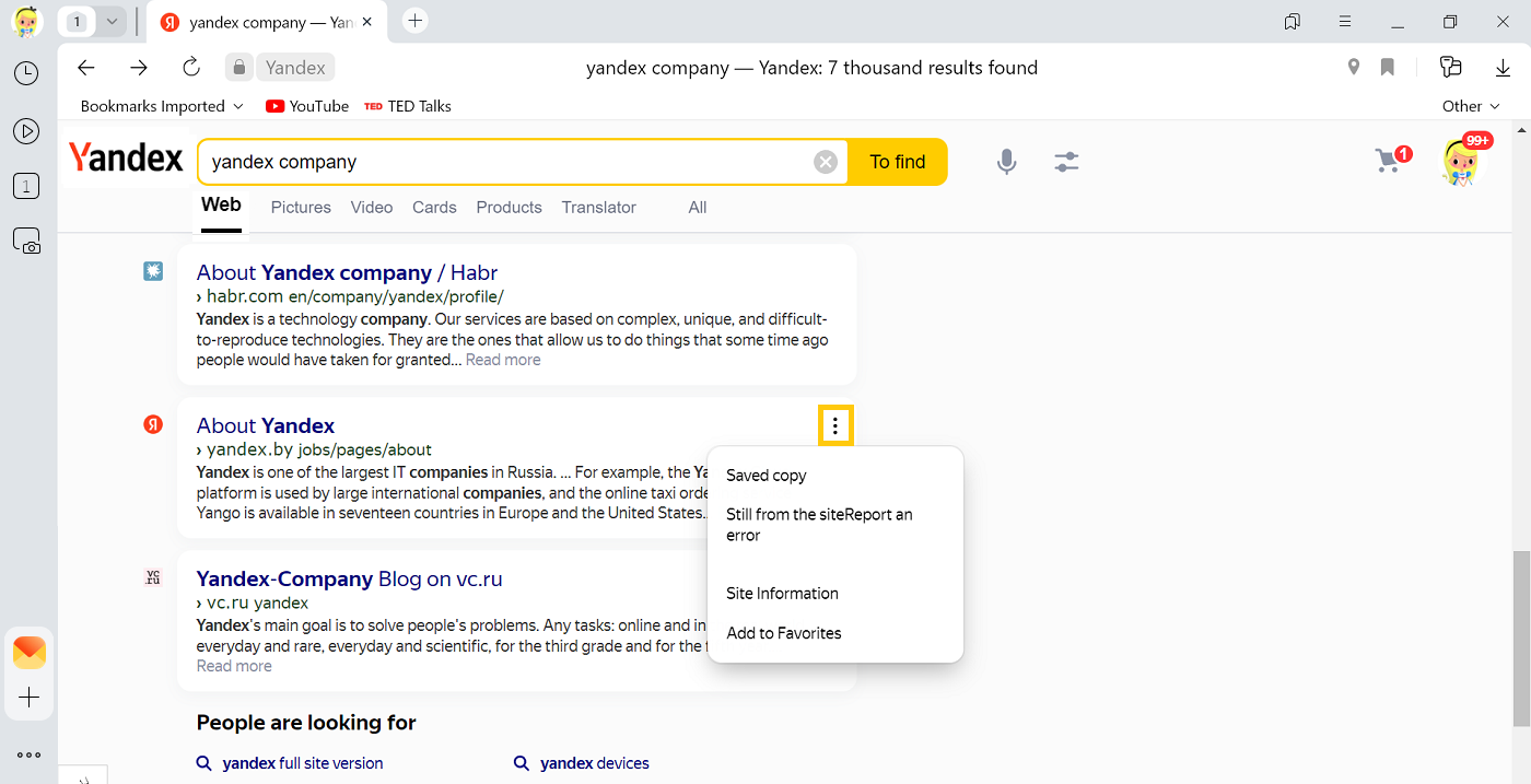 If you entered the page address incorrectly, Yandex Browser will give you links to existing pages with similar addresses, or suggest searching for it in Yandex.