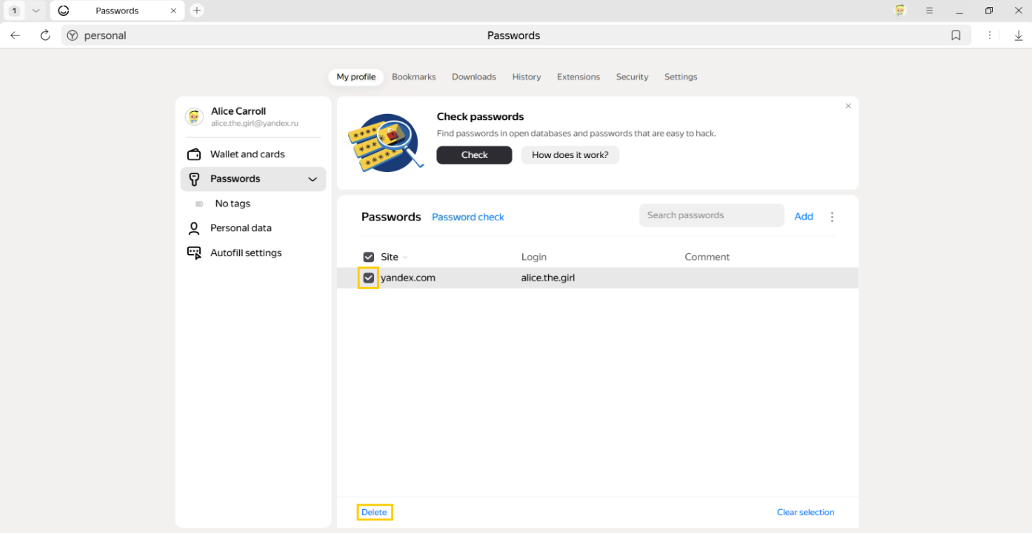 • Save passwords by default. If you untick this option, Yandex Browser won't save the passwords you enter, but it will insert passwords you previously created into login windows.