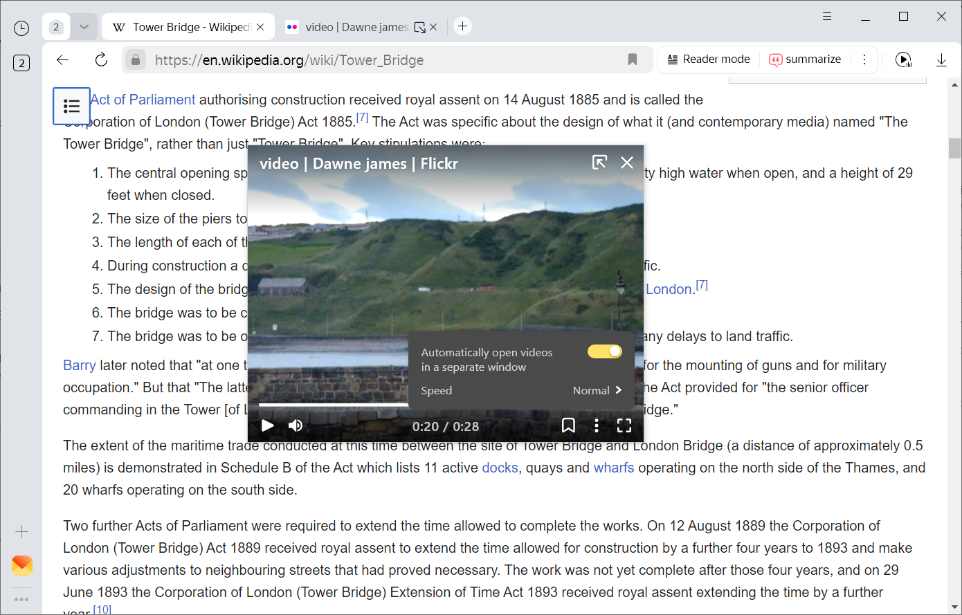 Video in a separate window