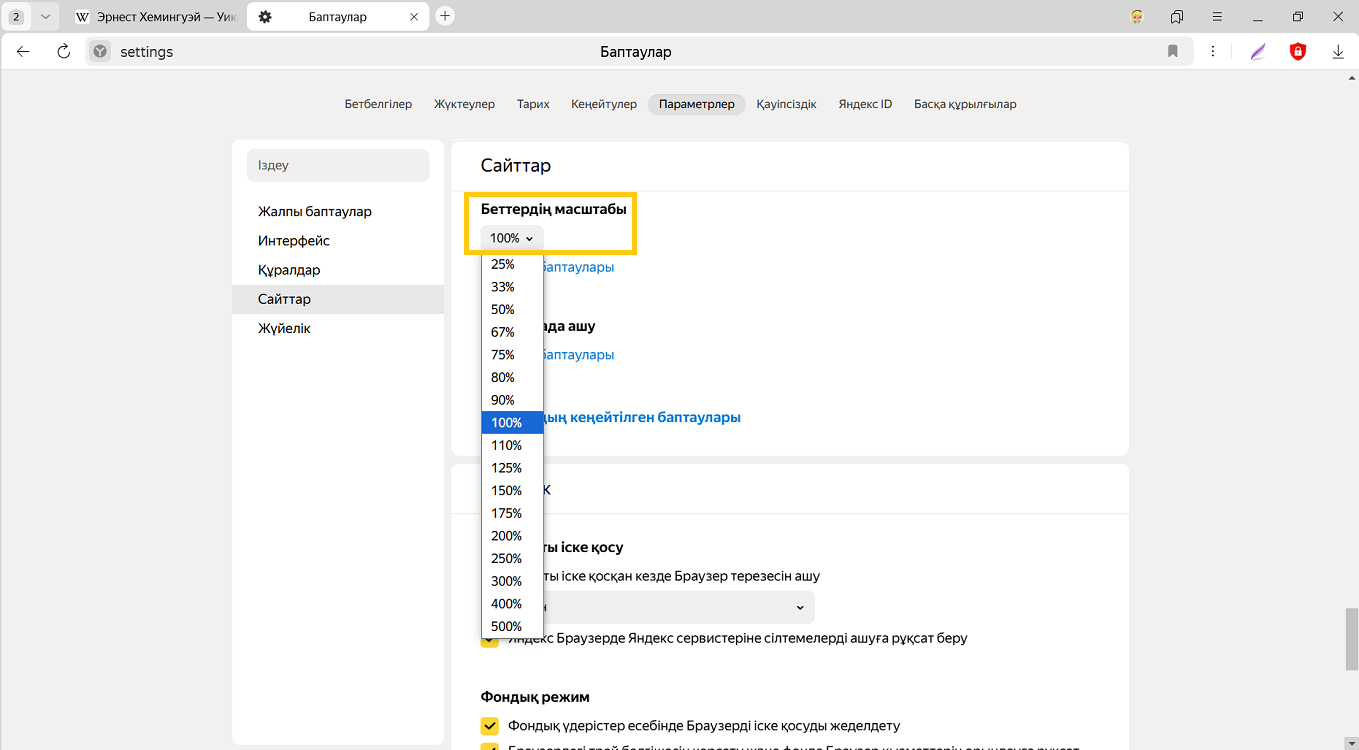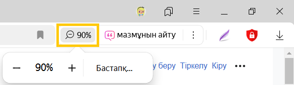 Өзгертілген масштаб туралы деректер Яндекс Браузерде сақталады. Қайта ашылған кезде, парақша таңдалған өлшемде көрсетіледі.