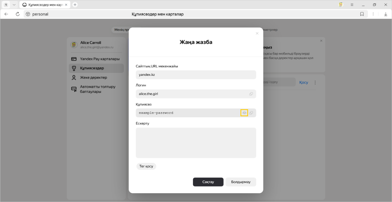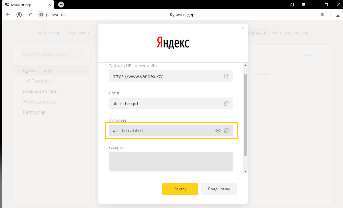 Қауіпсіздік мақсатында құпиясөздер серверде шифрланған түрде сақталады. Сондықтан Яндекс тіпті құпиясөздерді шеше алмайды.
