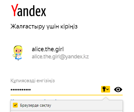 Егер сіз құпиясөзді логинсіз енгізсеңіз, Браузер бұрын сақталған логинді таңдауды ұсынады.