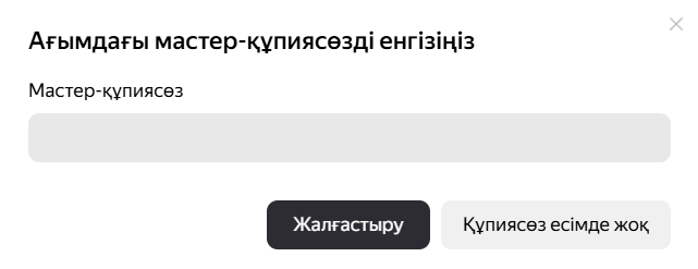Егер сізде мастер-құпиясөз болмаса, бірақ Windows немесе macOS үшін құпиясөз болса, Браузер оны енгізуді сұрайды. Бұл қауіпсіз — Браузер жүйелік құпиясөзді біле алмайды, себебі сіз оны жүйелік терезеде енгізесіз. Linux-те жүйелік құпиясөз жоқ.