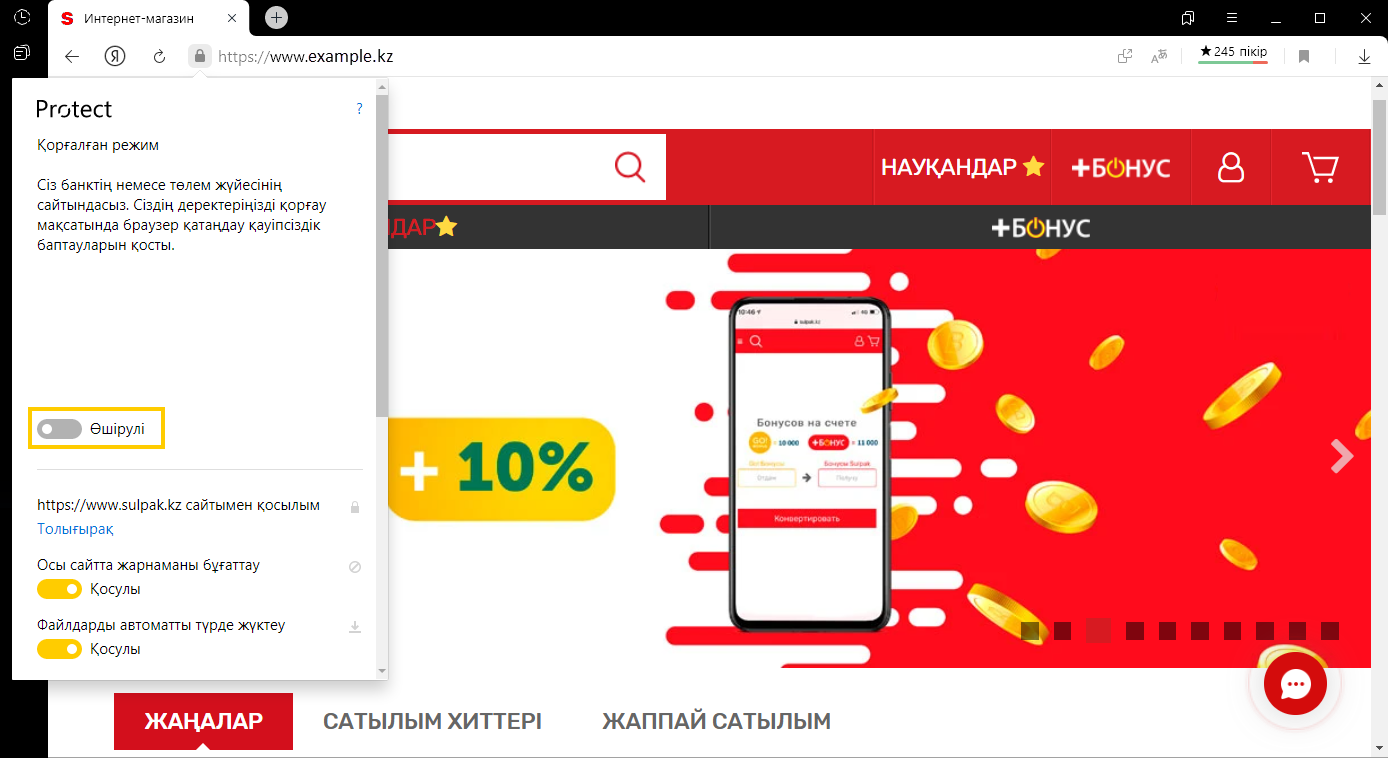 Егер сіз онлайн төлем бетін ашсаңыз және интерфейстің өзгерістерін көрмесеңіз, қорғалған режимді мәжбүрлеп қосыңыз.