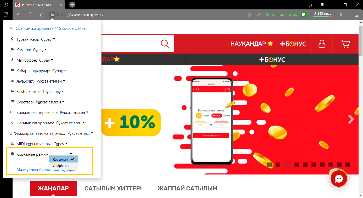 Қорғалған режимде Браузер HTTPS сертификаттарын тексерудің қатаң режимін қосады. Қорғалған режим қосылмайды, егер: