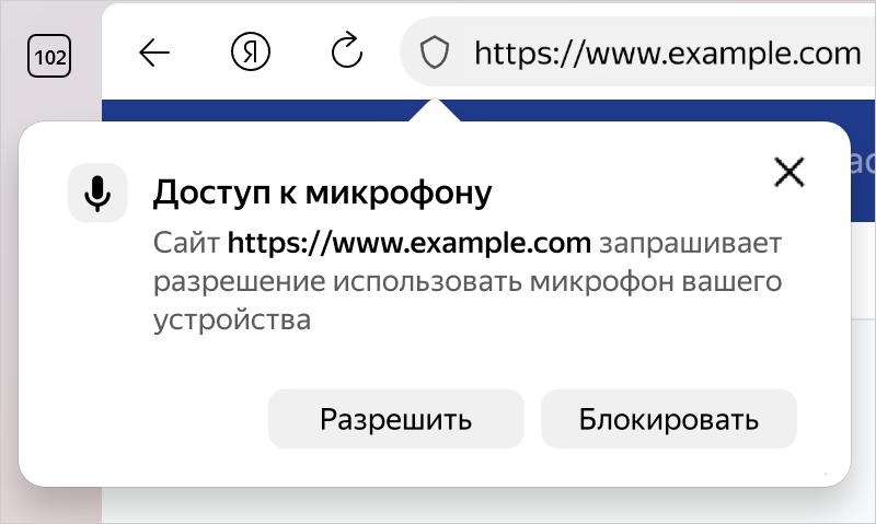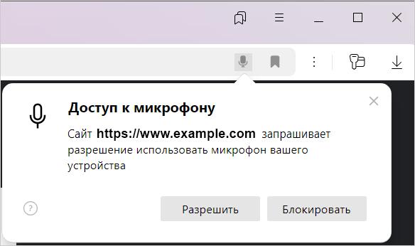 По умолчанию, когда сайт пытается получить доступ к микрофону, Яндекс Браузер запрашивает у вас разрешение.