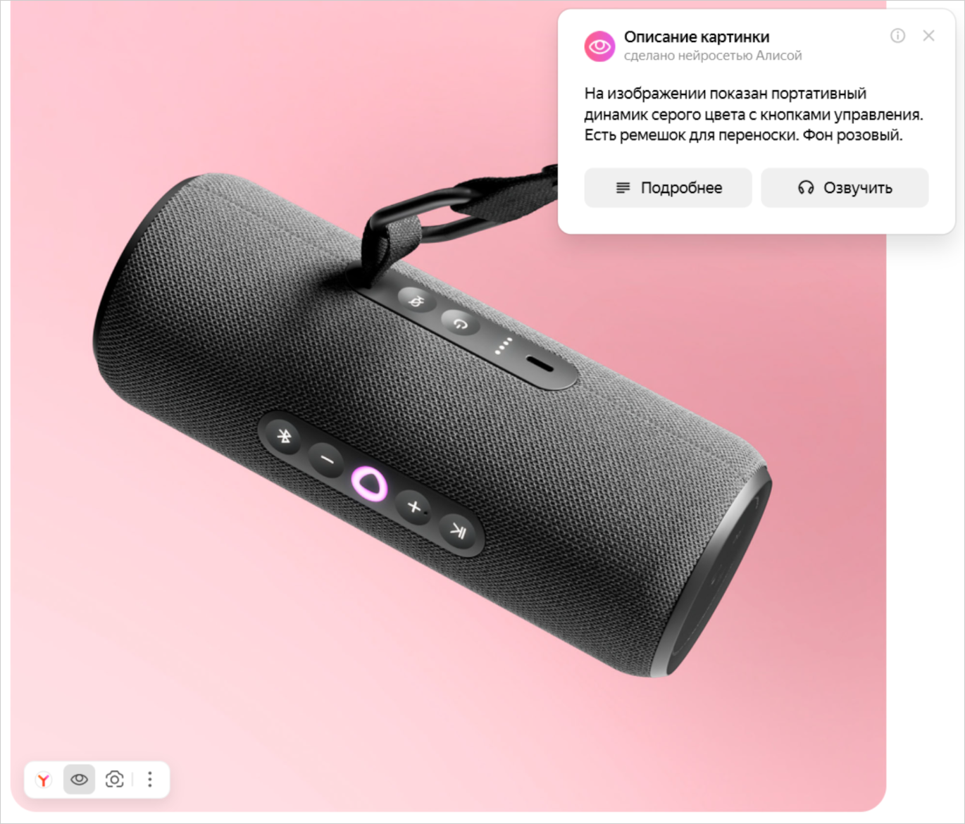 Если вы используете программу экранного доступа, Алиса создаст для нее описания картинок.
